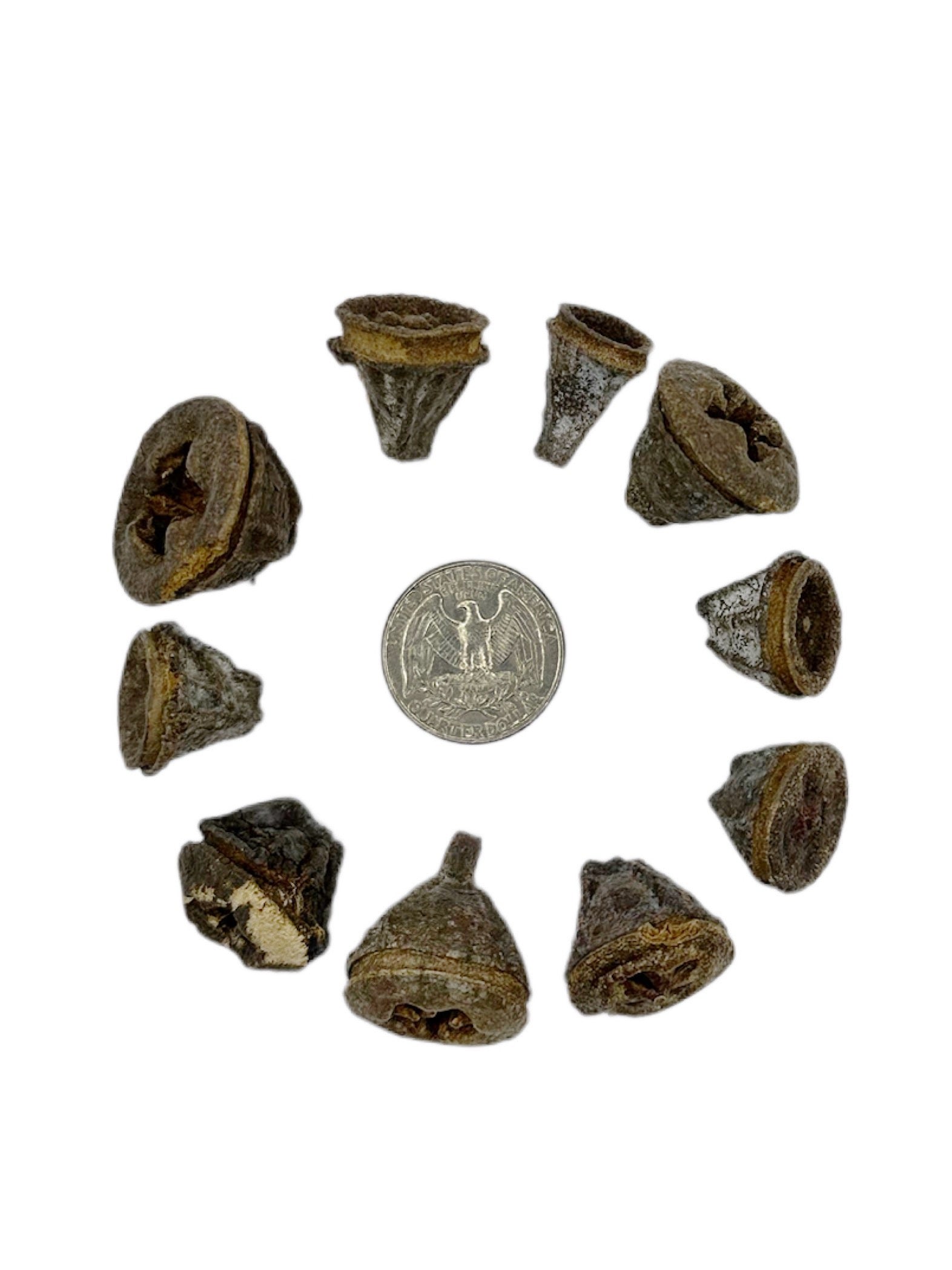 Eucalyptus seed pods are small pods from the Eucalyptus sp. tree. Eucalyptus pods do naturally contain a small amount of essential oil, so they do have a slight eucalyptus scent.