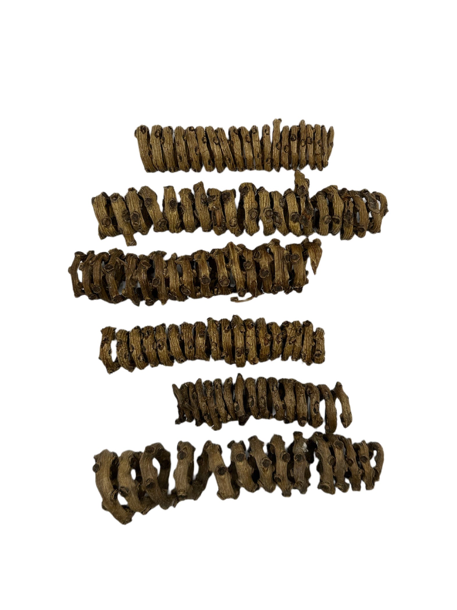 The palm tail spring is a product of the Borassus flabellifer palm tree. It is native to South and Southeast Asia, and it's a palm tree of the Sugar palm group. The palm tail springs have a unique spiral shape. Three palm tail springs per package.