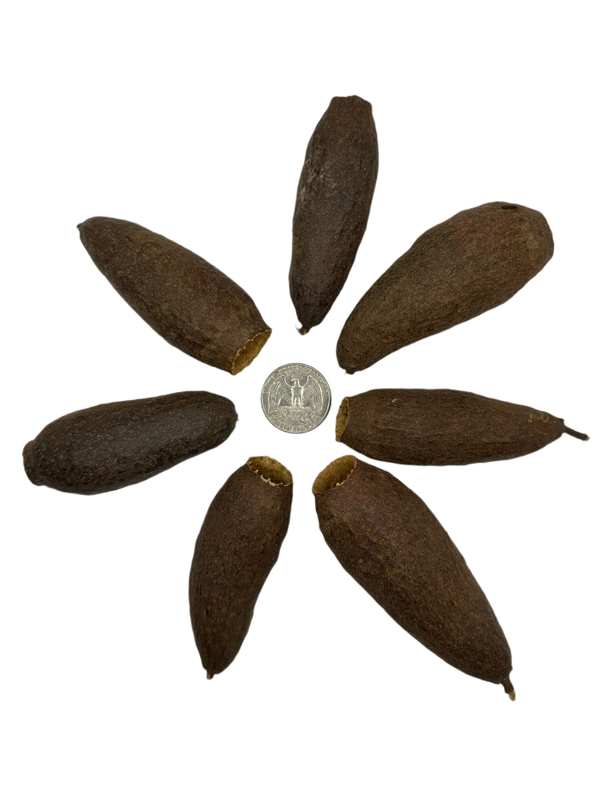 Trumpet pods, also known as Jequitiba pods, are thick seed pods that are the product of the Cariniana legalis tree. These pods are extremely dense and durable.