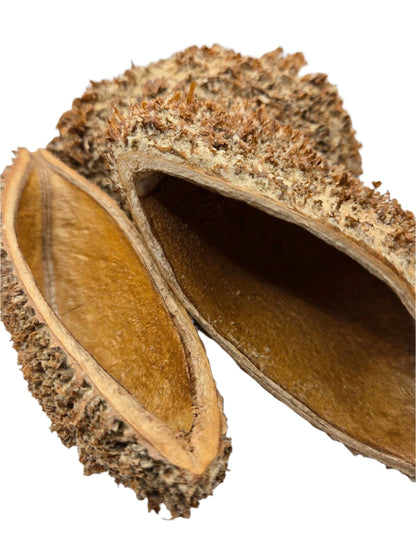 Urchin pods, also known as Bolsa Pastor seed pods are from the Zeyheria montana tree. They are a textured, interesting-shaped botanical. The outer textured area does rub off easily, but the shell of the pod is very sturdy.